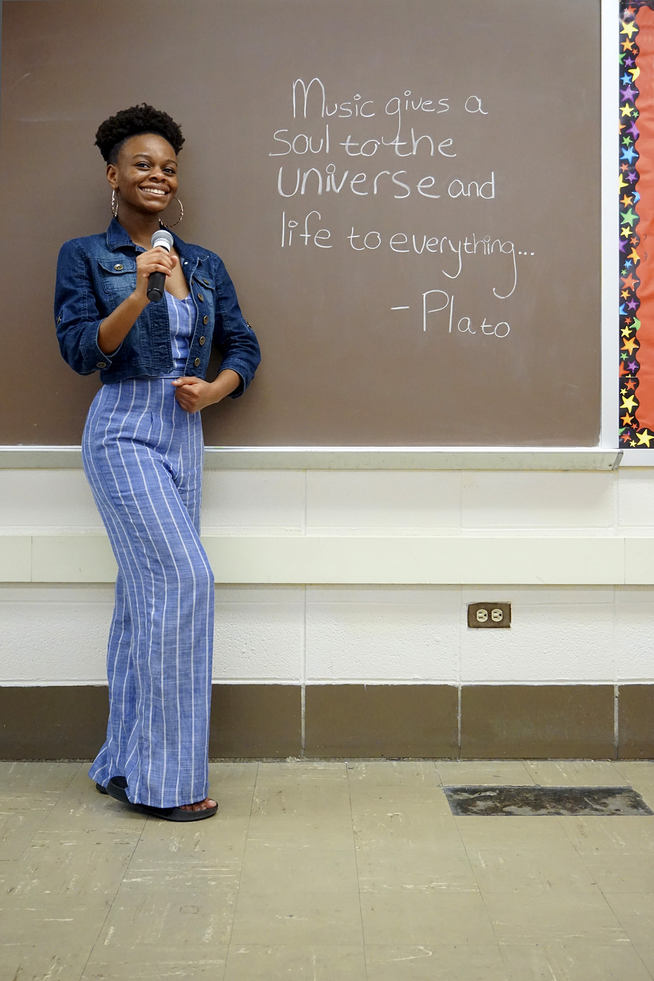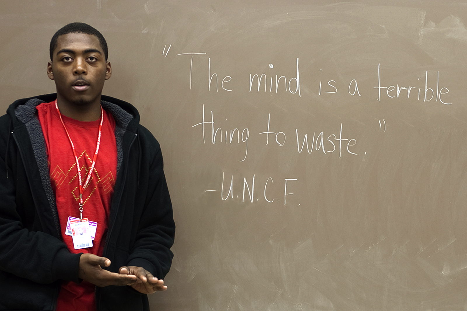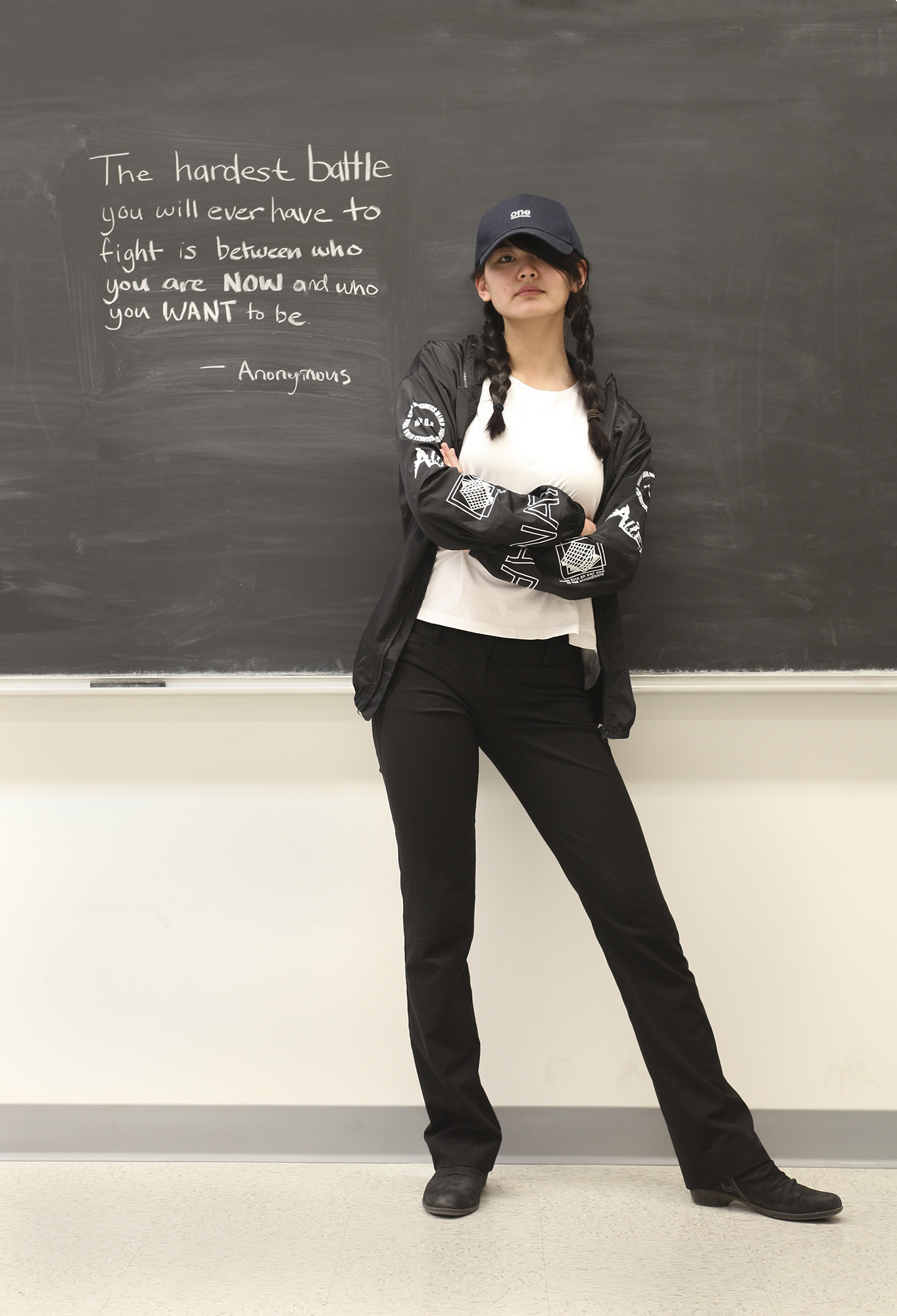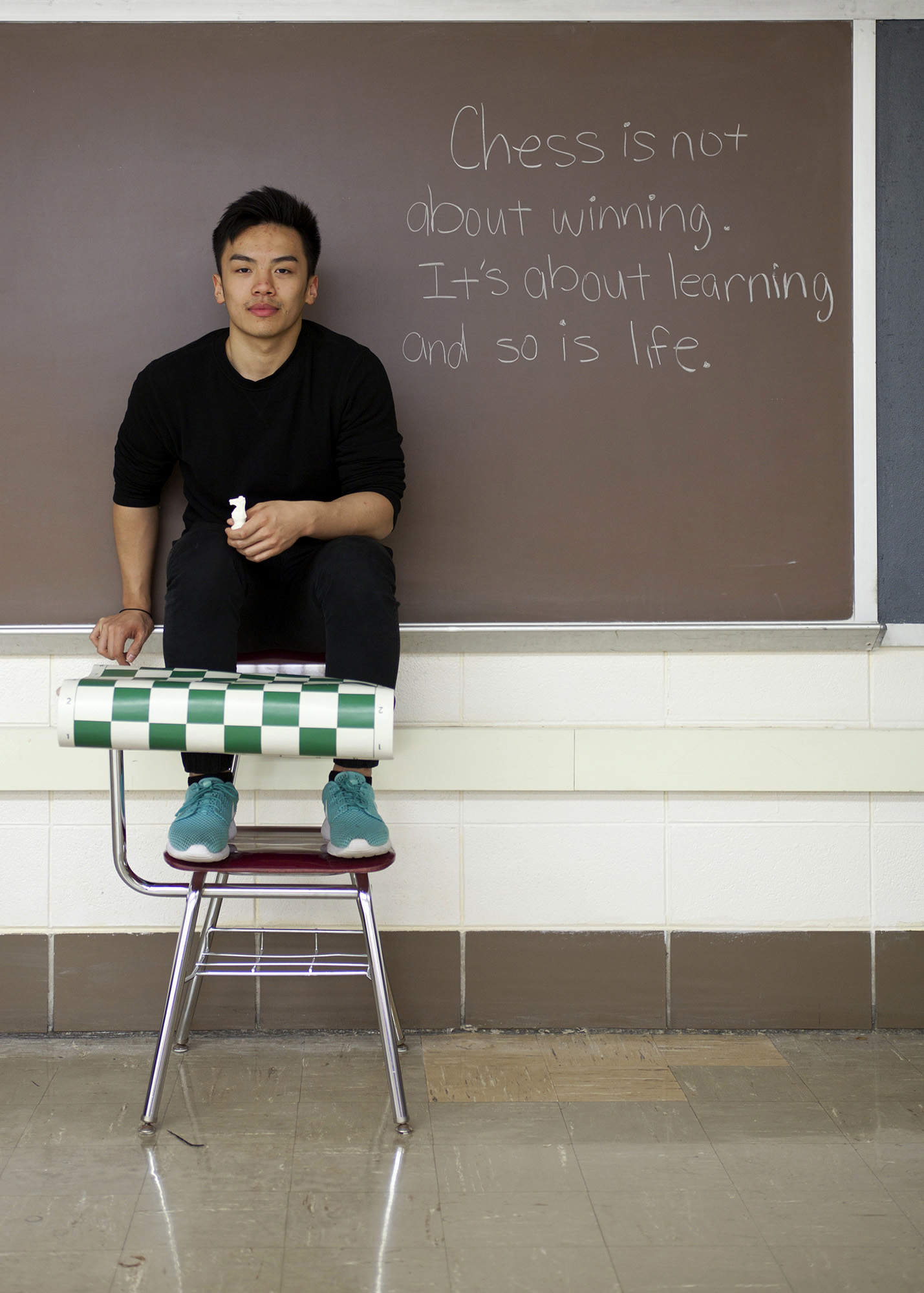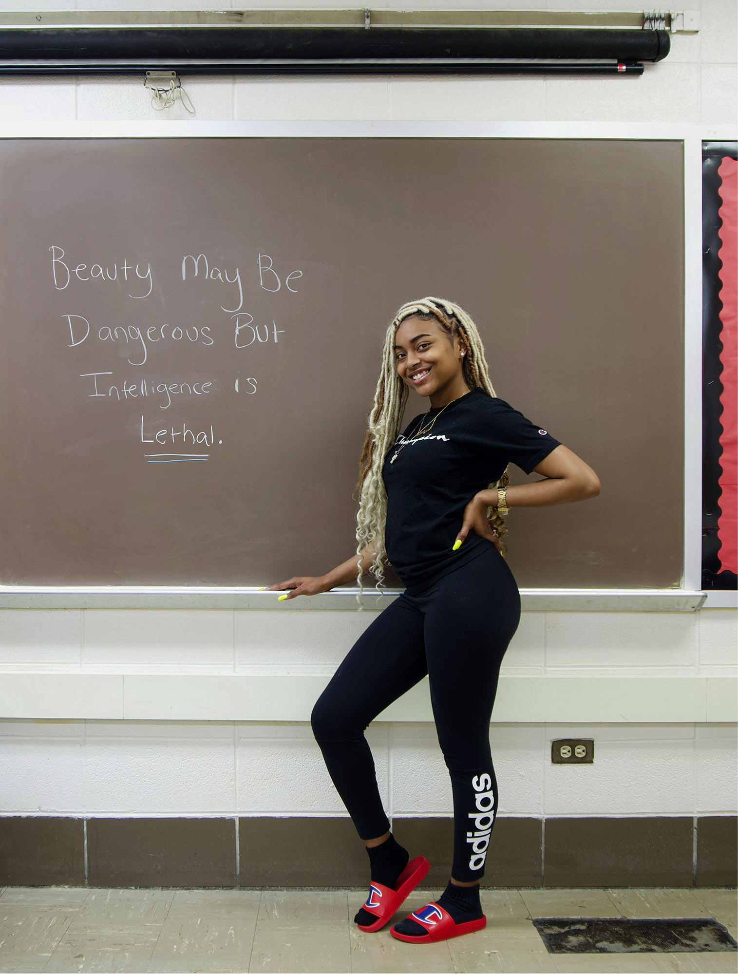 The High School Photo Project started in 2008 as Barack Obama was running for President. The students are seniors at the three high schools in the Obama’s home community of Hyde Park-Kenwood on Chicago’s southside. The students are asked to bring a quotation they believe speaks of their identity, interests, or beliefs. They wear what they wish and are welcome to bring props. They pose themselves and write the words they’ve chosen on a chalkboard in their school.